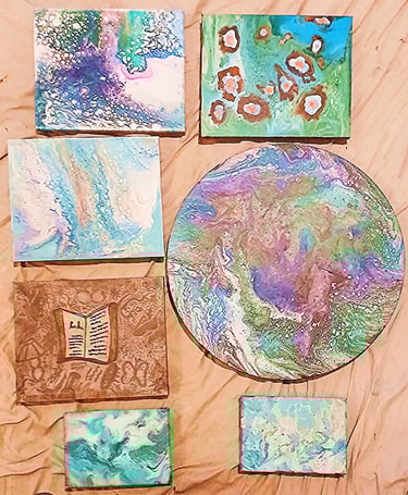 Finished some paired acrylic paintings, including the largest round canvas to date (16" diameter)